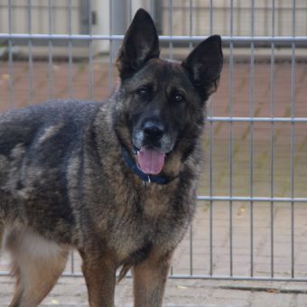 Die Schäferhund-Mischlingshündin ist sehr menschenbezogen, gibt sich viel Mühe Aufmerksamkeit zu bekommen und ist dabei stets freundlich.
