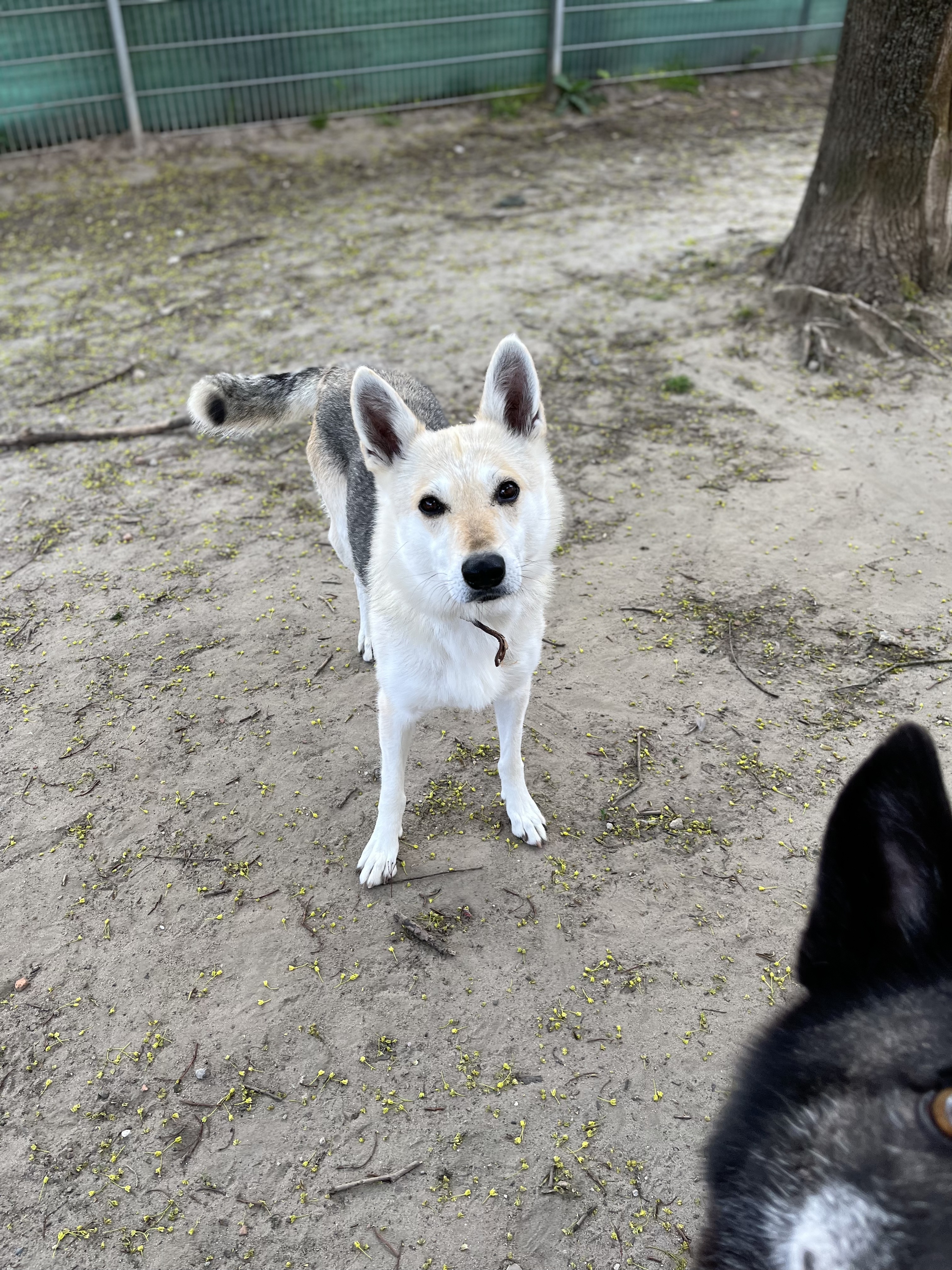 Shyly gehört zu Nashoba. Da die beiden sehr aneinander hängen, würden wir sie gerne gemeinsam vermitteln. Dies ist aber kein Muss. Was aber ein Muss ist: Shyly soll auf jeden Fall mindenstens als Zweithund leben.