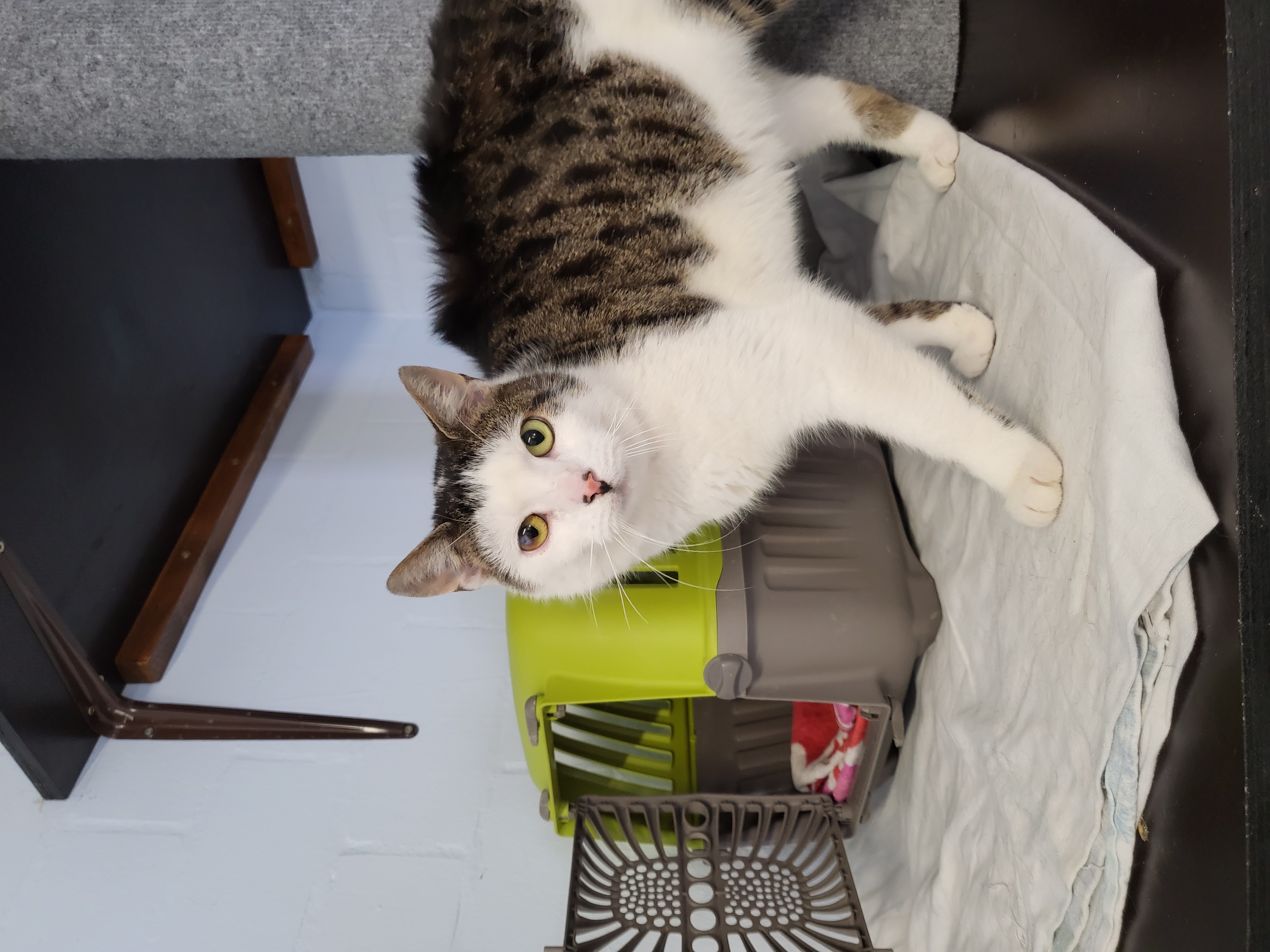Mit Artgenossen ist er nach Sympathie verträglich, wobei er Kater in der Regel nicht leiden kann. Besonders gerne hat er unsere Langzeitbewohnerin Jeepers.