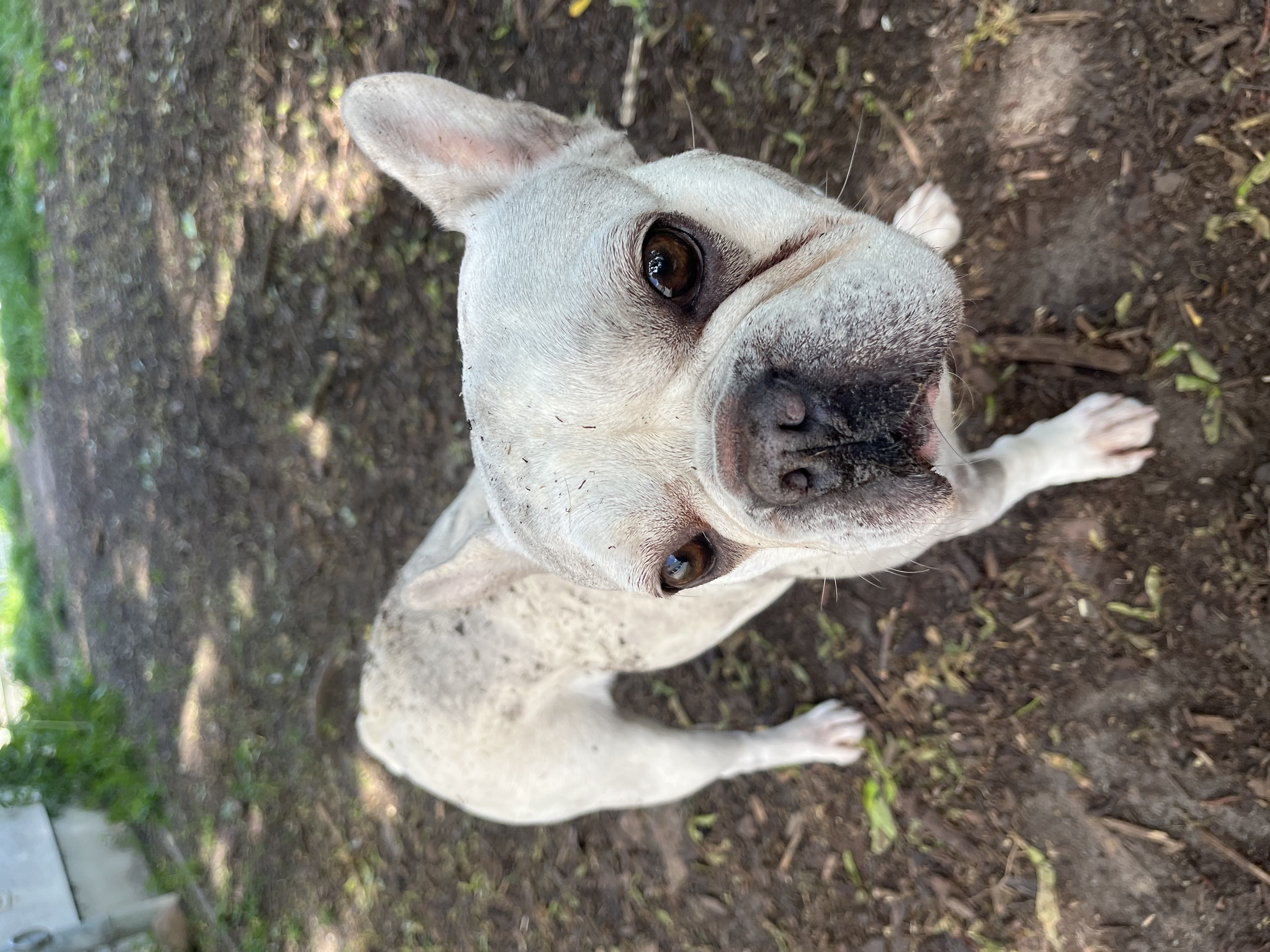Die kleine Bulldogge dachte, es wäre ihr Job Frauchen zu bewachen und ihr alle möglichen Menschen vom Hals zu halten. Das hat sie Bulldoggen-typisch auch sehr vehement getan und ging wie eine Schnappschildkröte nach vorne.